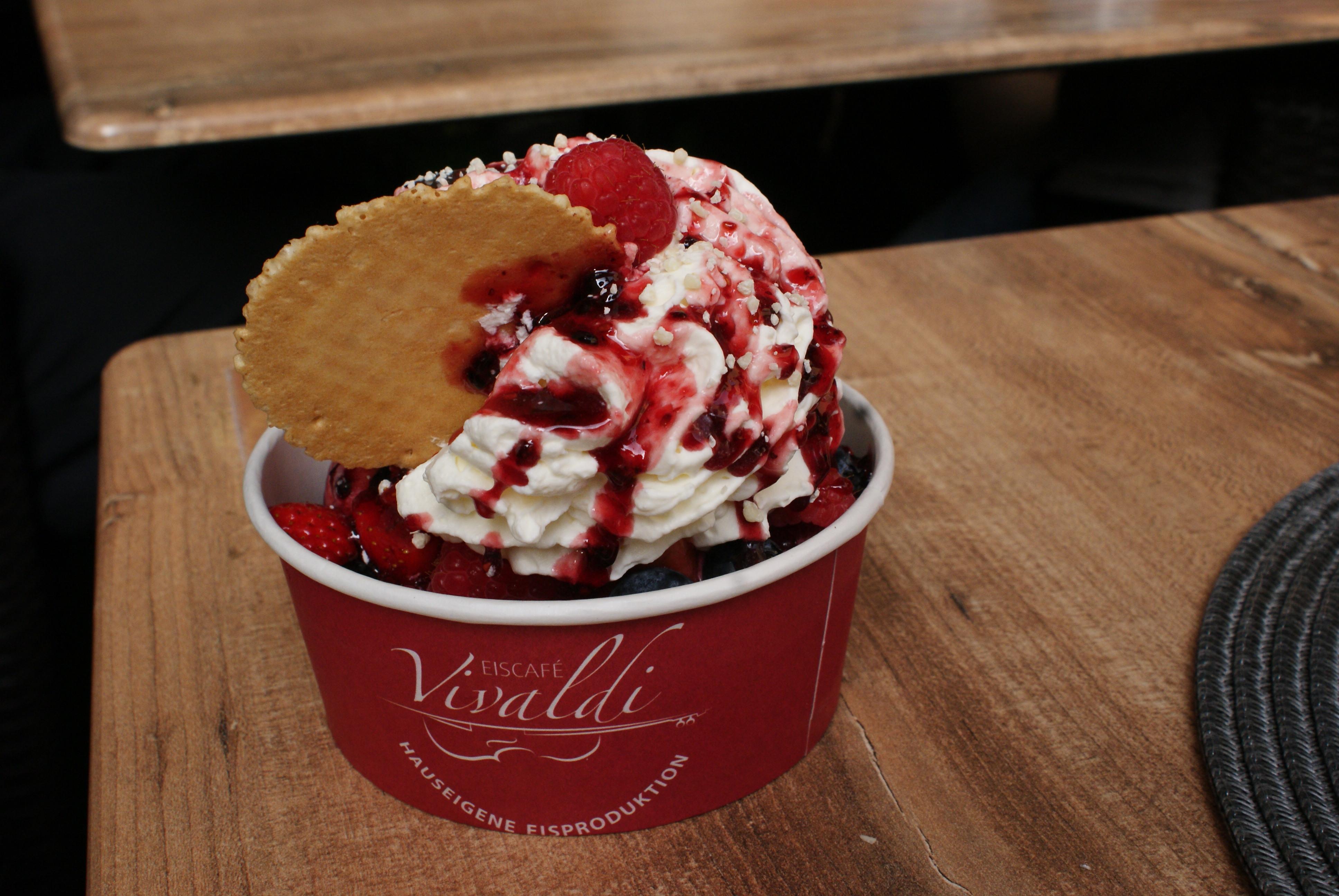 Dem Wetter, aber auch unserer Laune entsprechend tuckerten wir mit der Traditionsbahn nach Bad Schandau, um uns eine eisige Belohnung für den Tagesausflug zu gönnen.