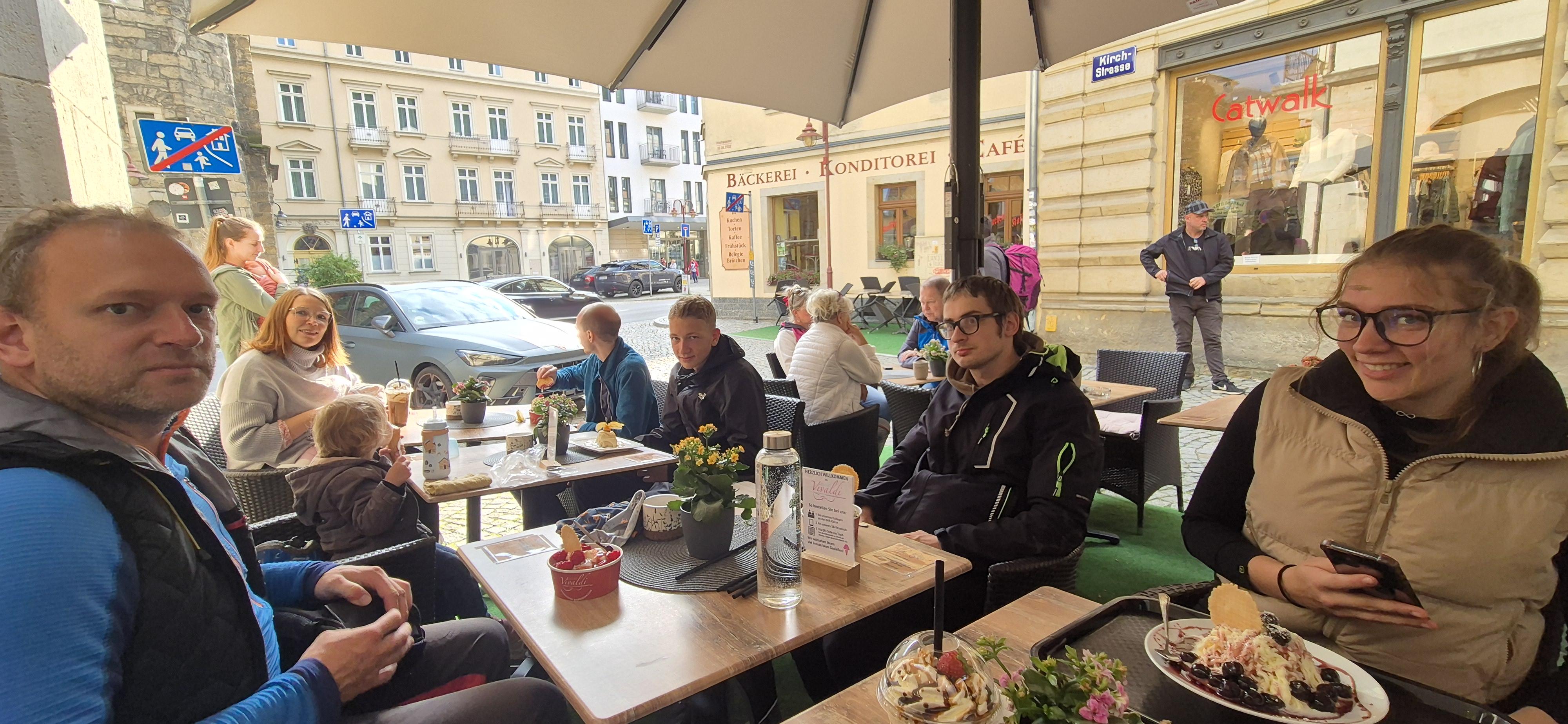 Dem Wetter, aber auch unserer Laune entsprechend tuckerten wir mit der Traditionsbahn nach Bad Schandau, um uns eine eisige Belohnung für den Tagesausflug zu gönnen.