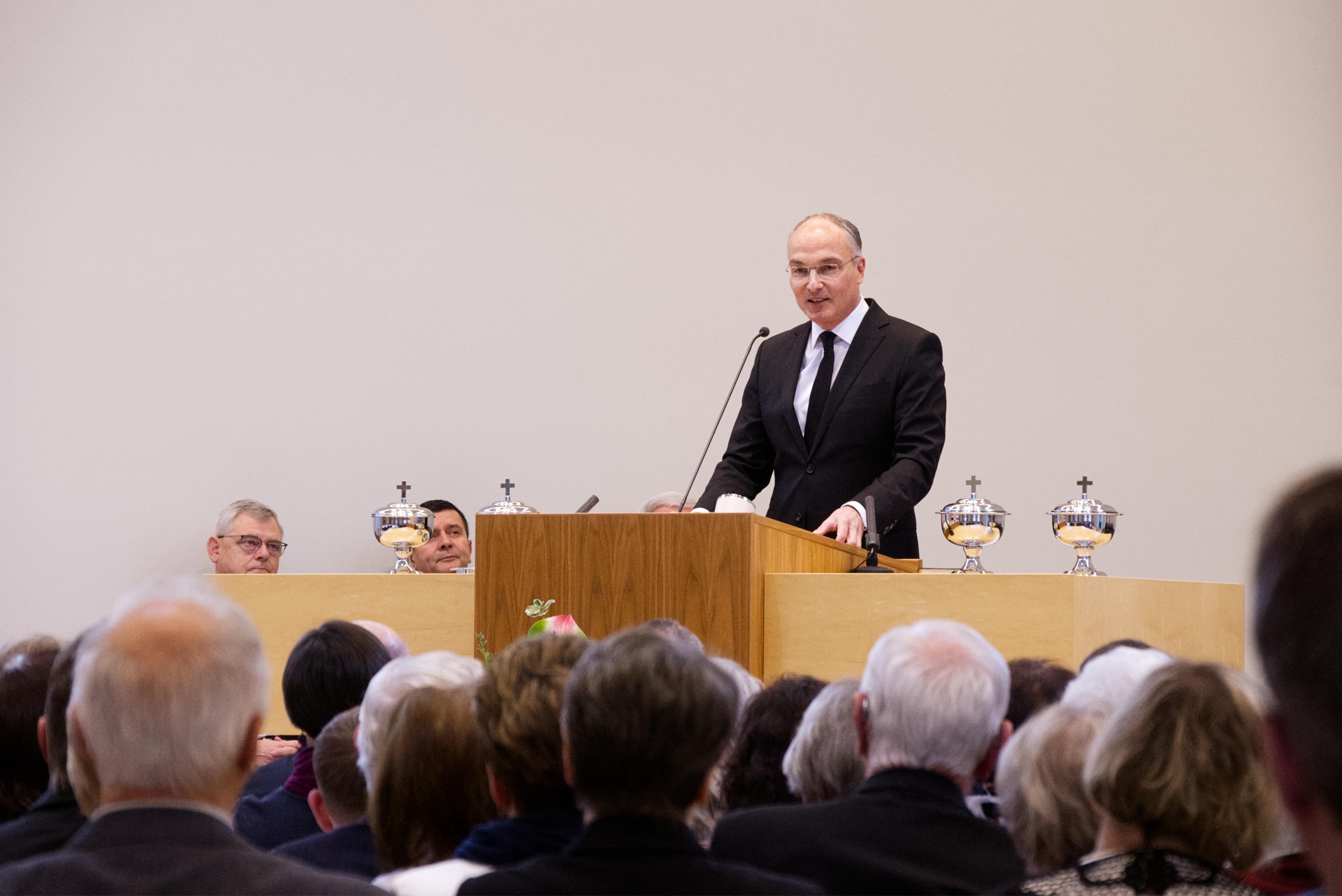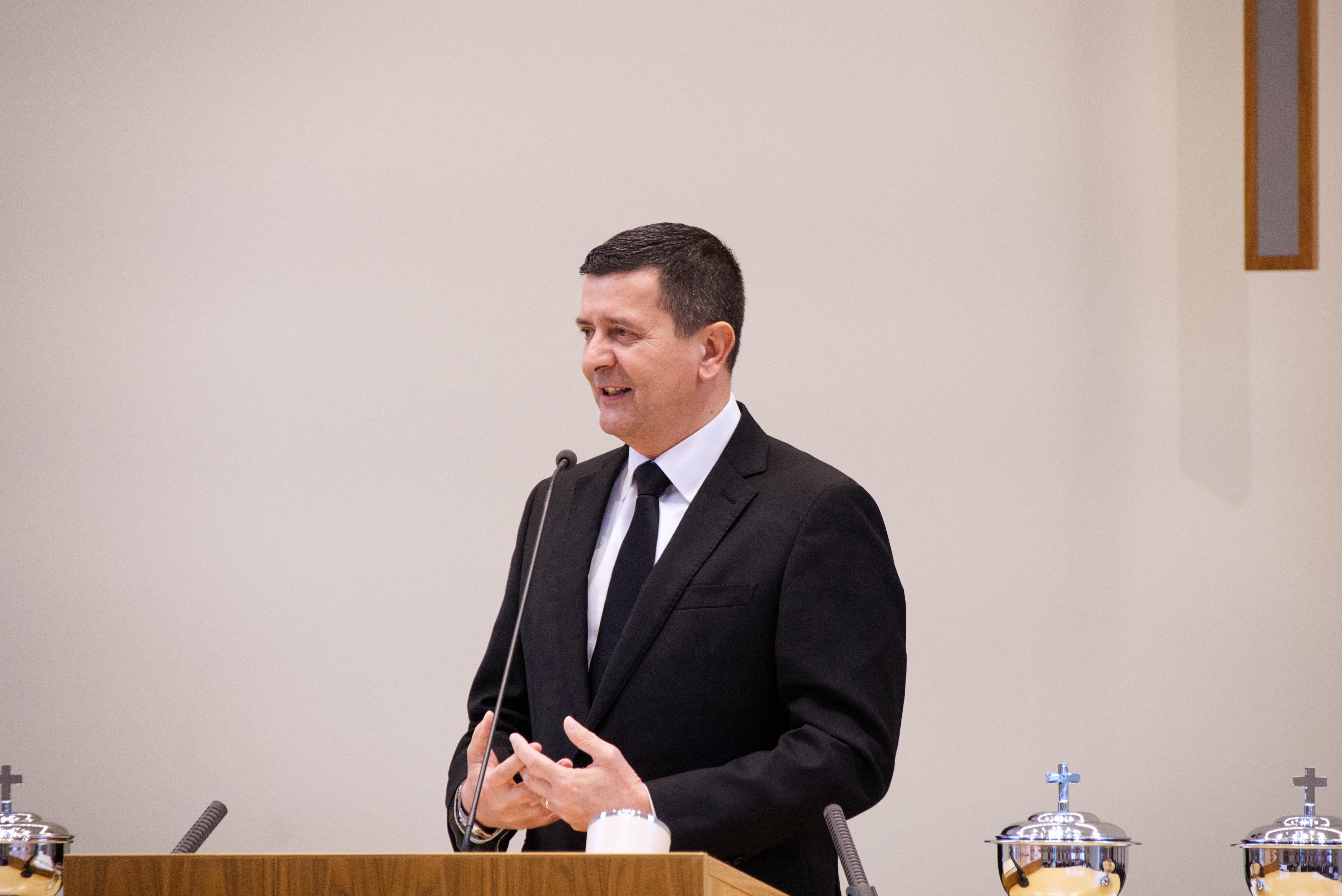 In seiner Predigt beleuchtete der Stammapostelhelfer sowohl die mit Tod, Verlust und Trennung verbundene Trauer als auch die durch den Glauben an die Auferstehung Christi erwachsende Hoffnung auf eine gemeinsame Zukunft.