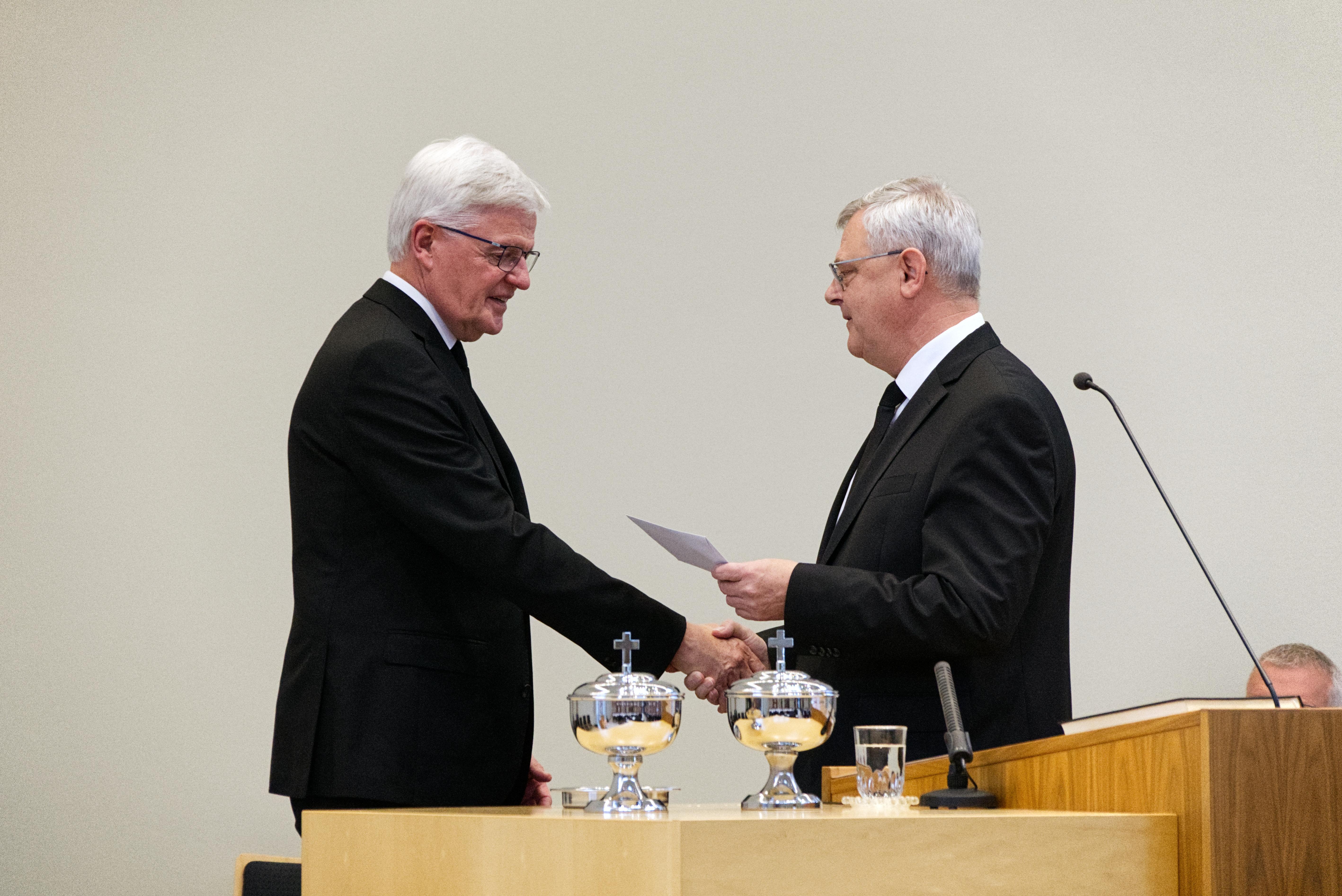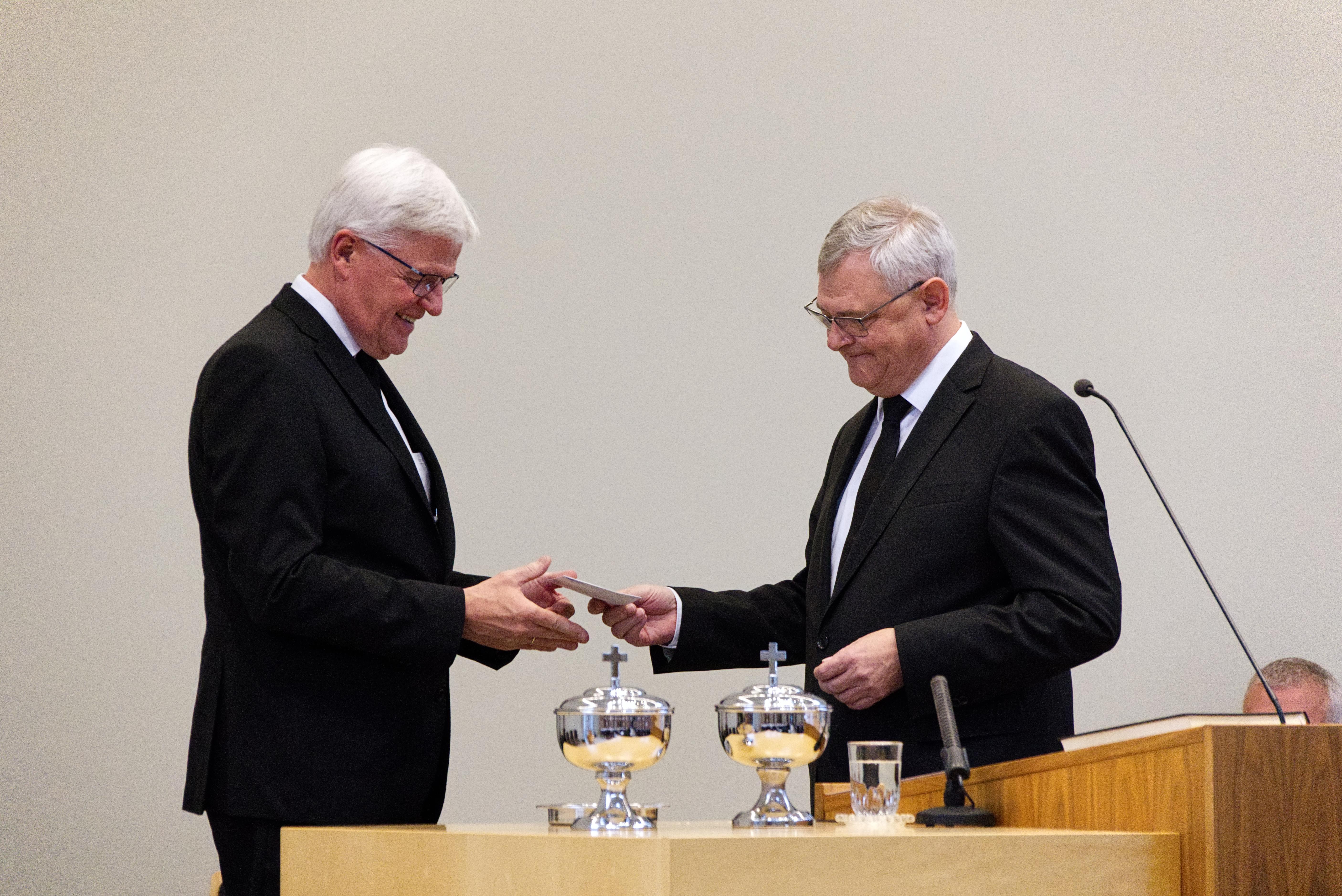 Zuvor jedoch ergriff Apostel Ralph Wittich das Wort und dankte dem scheidenden Bezirksapostel Rüdiger Krause für sein Wirken im Apostelbereich und wünschte ihm für den bevorstehenden Ruhestand alles Gute, eine robuste Gesundheit und in allem Gottes Segen. Gern schließen wir uns den guten Wünschen an.